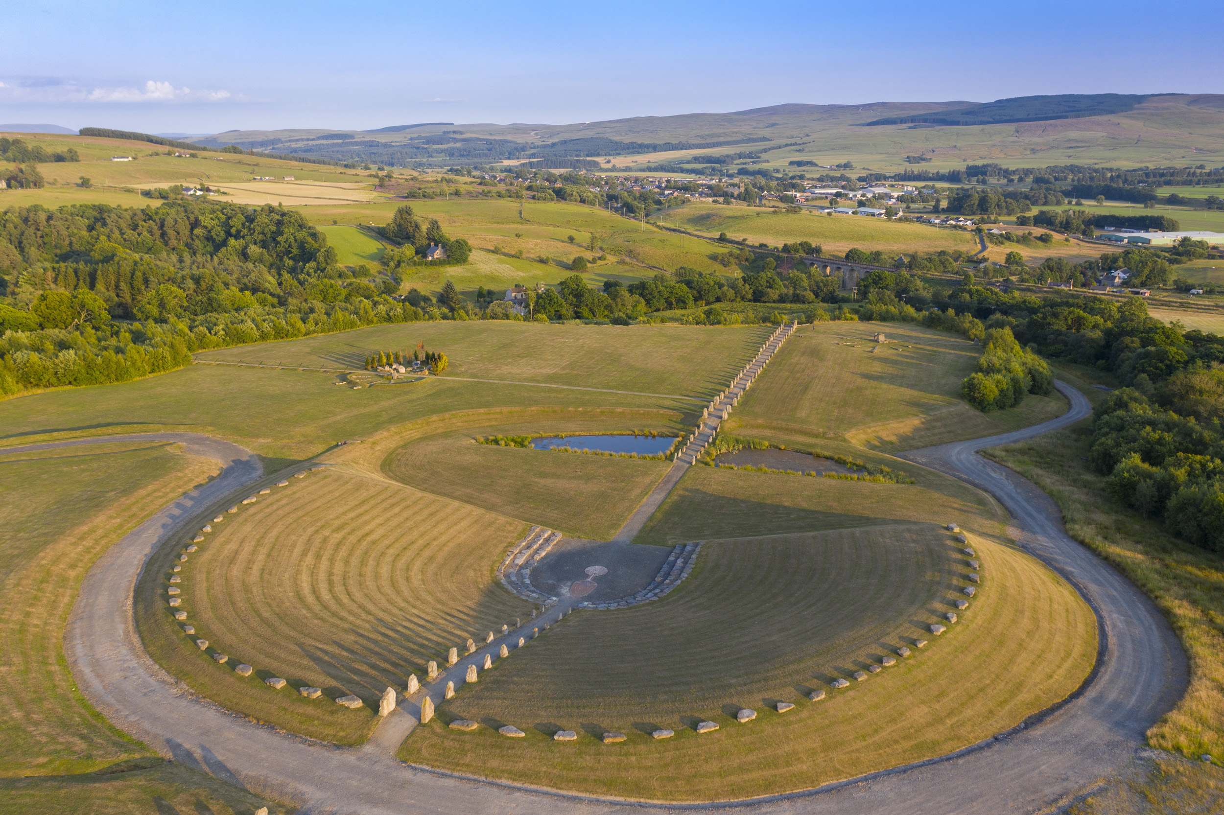 Located near Sanquhar in Dumfries and Galloway, Crawick Multiverse is of outstanding artistic and historical interest as an example of early 21st century land art. It was designed and constructed on the site of a former open-cast coal mine by renowned landscape architect Charles Jencks between 2011 and 2017. It is now run by The Crawick Multiverse Trust, who operate the site as a visitor attraction, unique destination and outdoor venue.